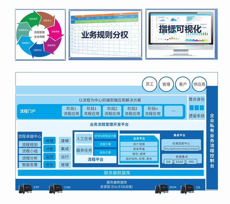 系統(tǒng)特色:解決企業(yè)流程運(yùn)作監(jiān)管難的問題,通過流程節(jié)點(diǎn)時效分析、智能警告等手段,將流程實(shí)際動作實(shí)現(xiàn)可視化,促使各單位及時、高效地精準(zhǔn)執(zhí)行,并為考核提供有效評價依據(jù)。